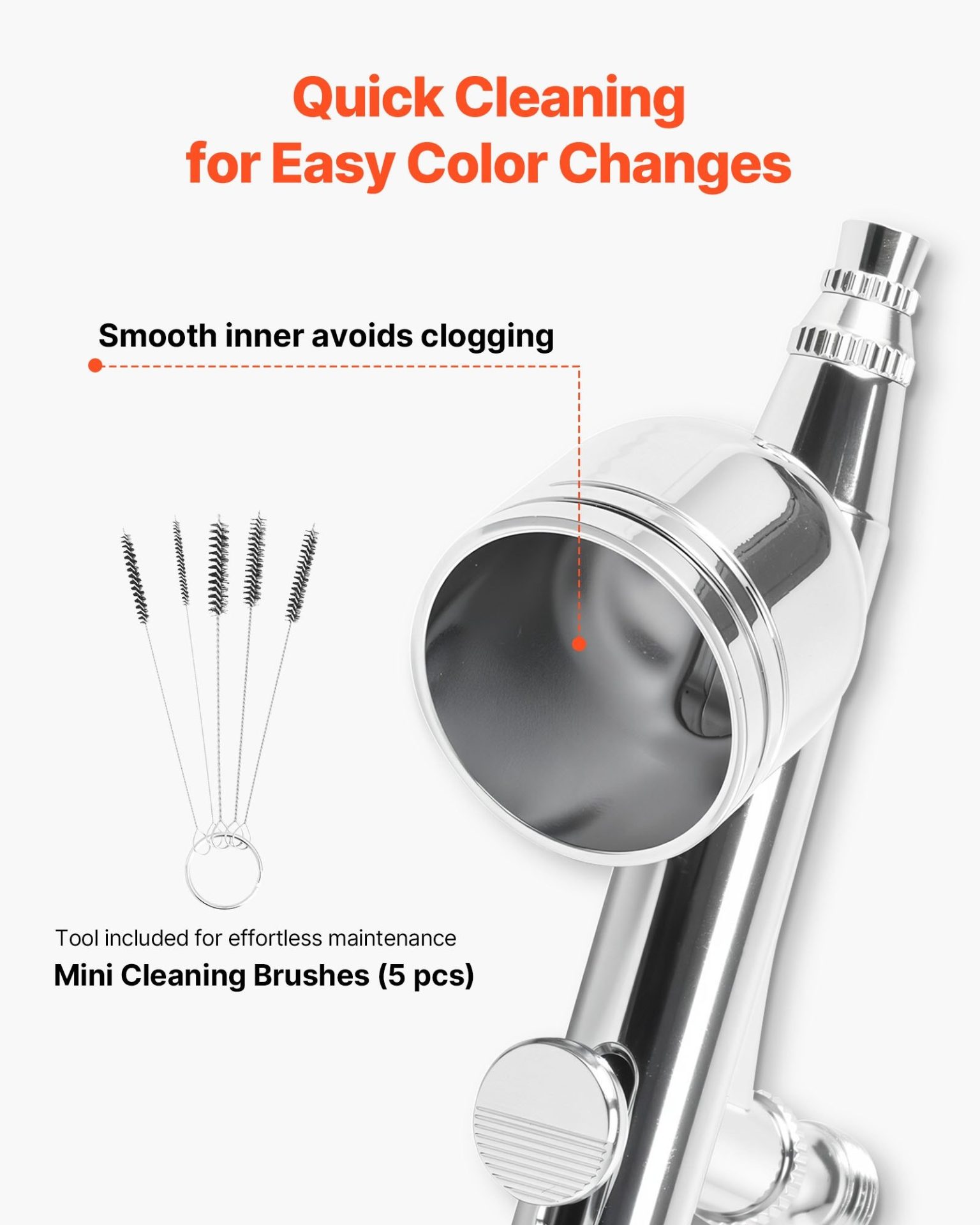 Аерограф с компресор VEVOR TC-201 работи с мощност 120 W и поддържа въздушен поток 23-25 литра в минута. При пръскане струята остава равномерна и предвидима. Работата е тиха и не натоварва при по-дълго използване.