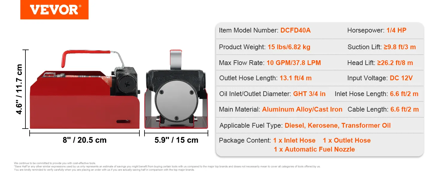 Електрическа помпа за източване на гориво Vevor DCFD40A