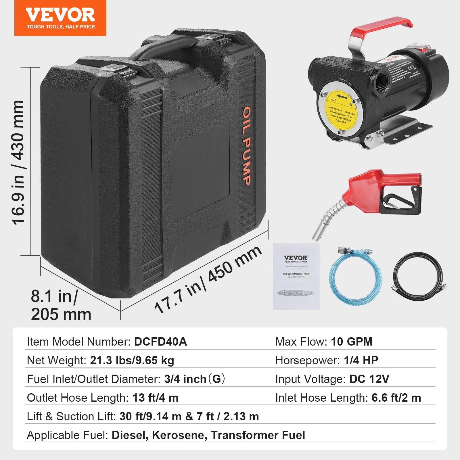 Електрическа помпа за нафта 12V Vevor DCFD40A с куфар