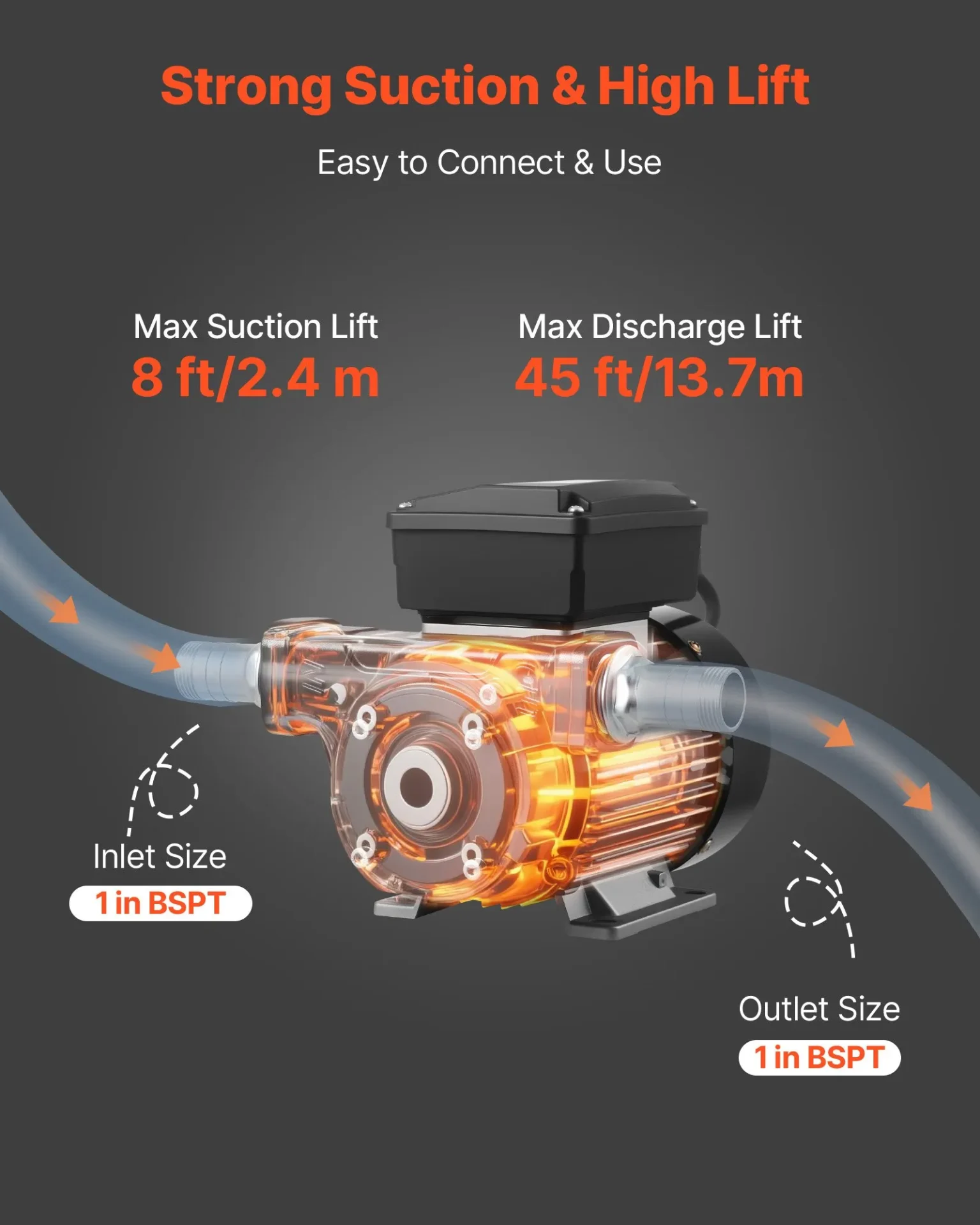 • Максимална дълбочина на засмукване 2.4 метра