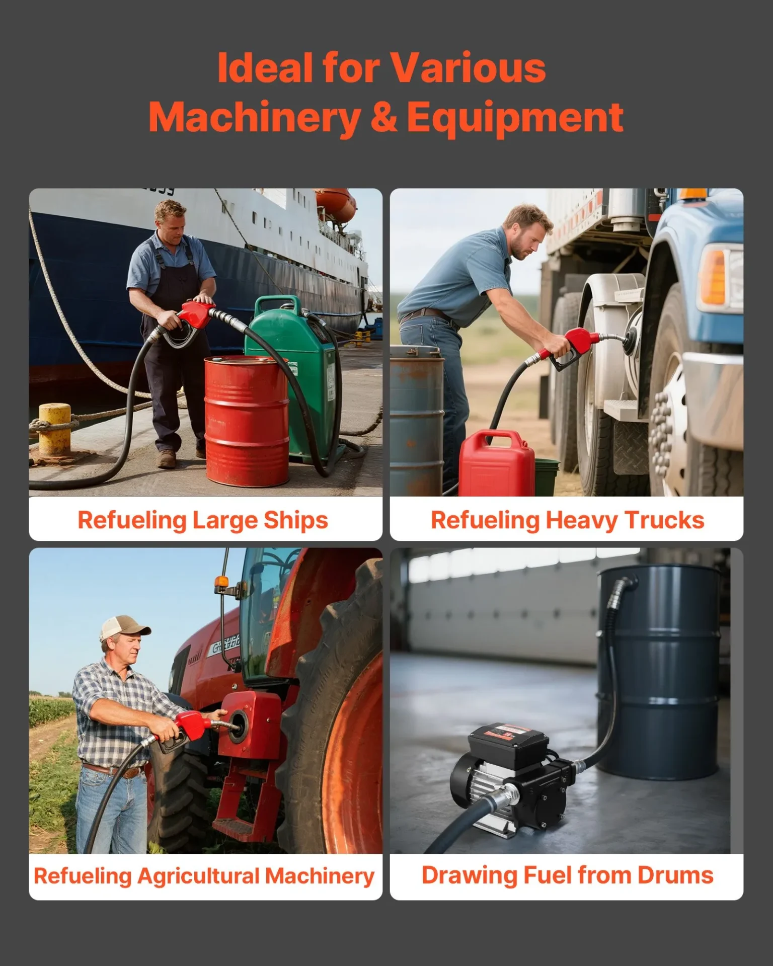 Електрическа помпа за точене на гориво Vevor DTP-60N-D01, Захранване 230V, Дебит 60 литра в минута, Засмукване 2.4 м