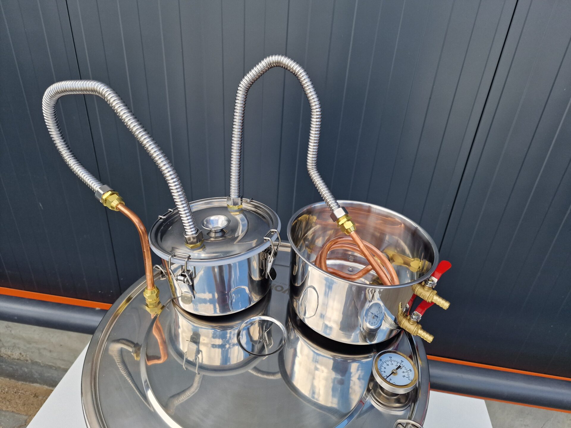 - Възможност за комбиниране с мед – Медни серпентини или мрежи могат да се добавят към неръждаемия съд, за да се постигне същото качество на дестилация като при меден казан.