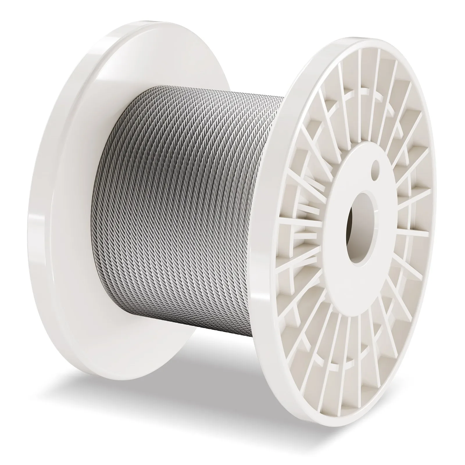 Конструкцията 7×7 съчетава гъвкавост и здравина и позволява лесно огъване при монтаж без загуба на якост. Въжето е с диаметър 3.18 мм и предлага отличен баланс между стабилност и удобство при работа. Повърхността е гладко полирана и осигурява по-лесно рязане и монтаж, като същевременно намаля риска от нараняване при работа.