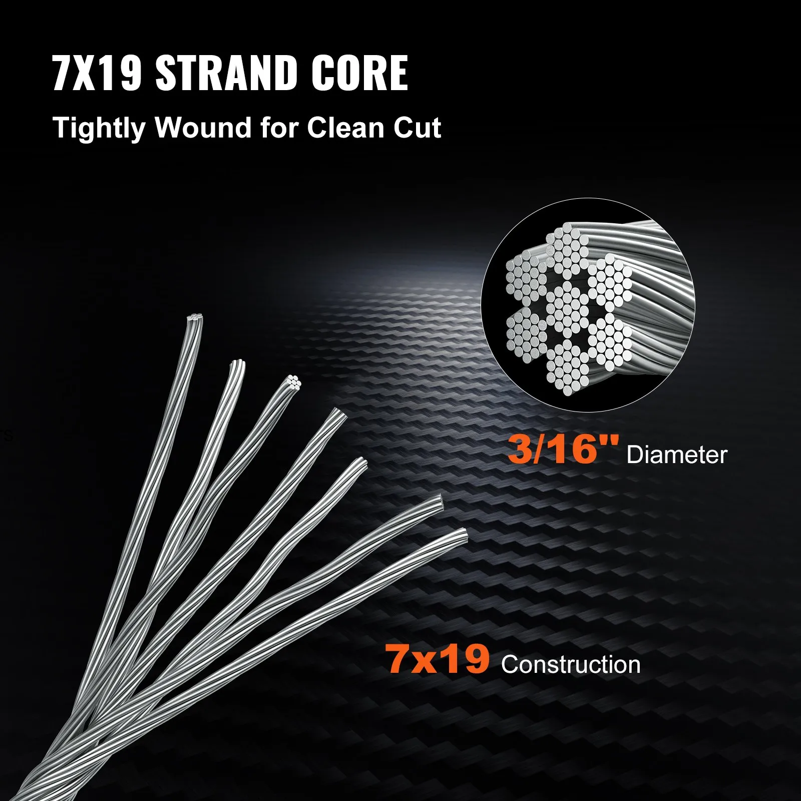 Стоманеното въже Vevor е изработено от висококачествена неръждаема стомана клас 304 и осигурява отлична устойчивост на корозия и износване. Подходящо е за използване както на открито, така и в затворени помещения. Повърхността е гладка и полирана и осигурява безопасна работа без нараняване на ръцете при рязане или монтаж. Конструкцията 7×19 гарантира висока гъвкавост и здравина, като въжето остава устойчиво при натоварване и не се разнищва при рязане. Диаметърът от 4.76 мм позволява използване при различни проекти, включително парапети, огради, окачване и укрепване.