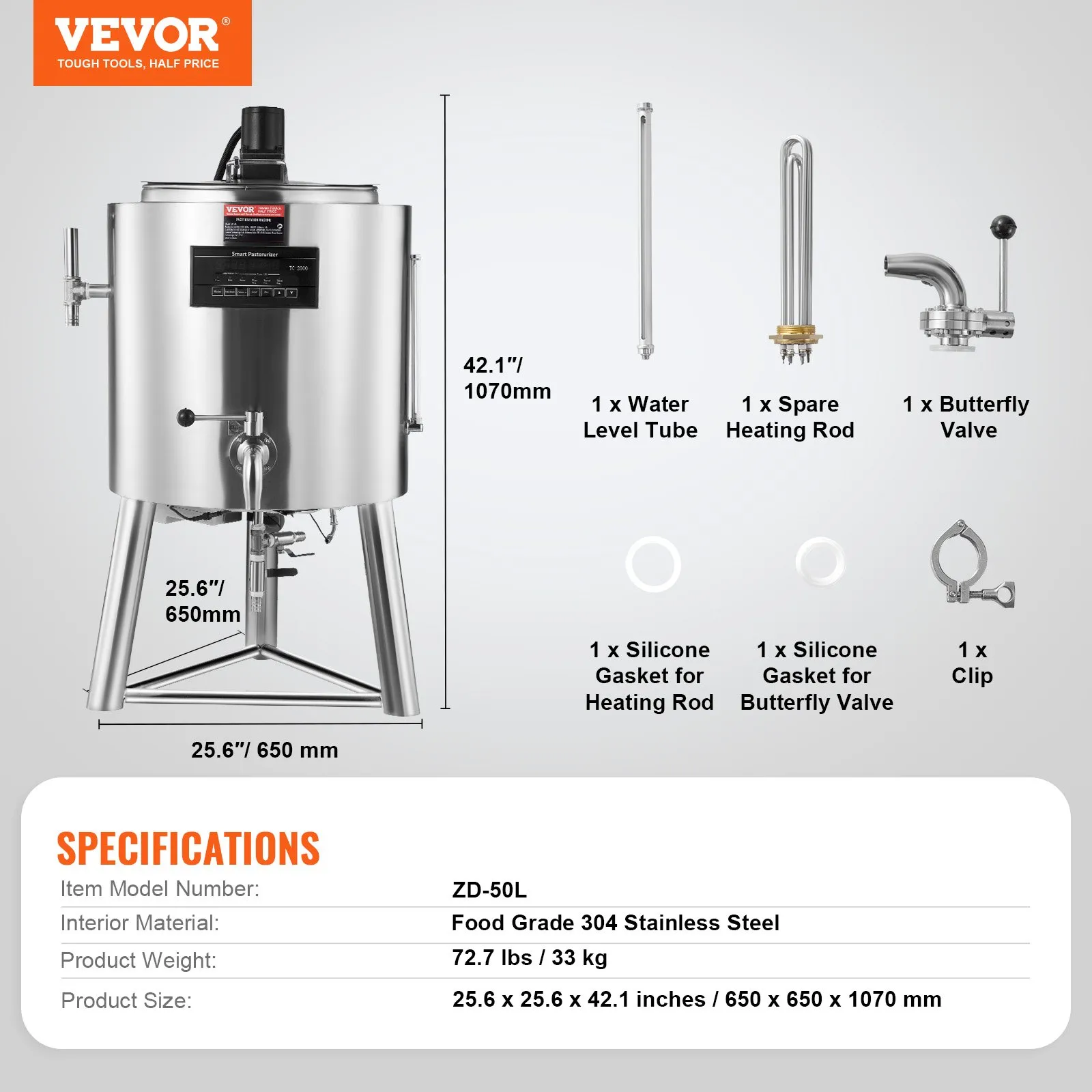 Пастьоризаторът за мляко Vevor ZD-50L е подходящ за краве, козе, овче, биволско и камилско мляко, както и за растителни алтернативи като соево, бадемово, кокосово и пшенично мляко. Подходящ е и за пастьоризация на сокове и други течни продукти. Конструкцията позволява запазване на хранителните вещества и естествения вкус на продуктите, което води до по качествен краен резултат.