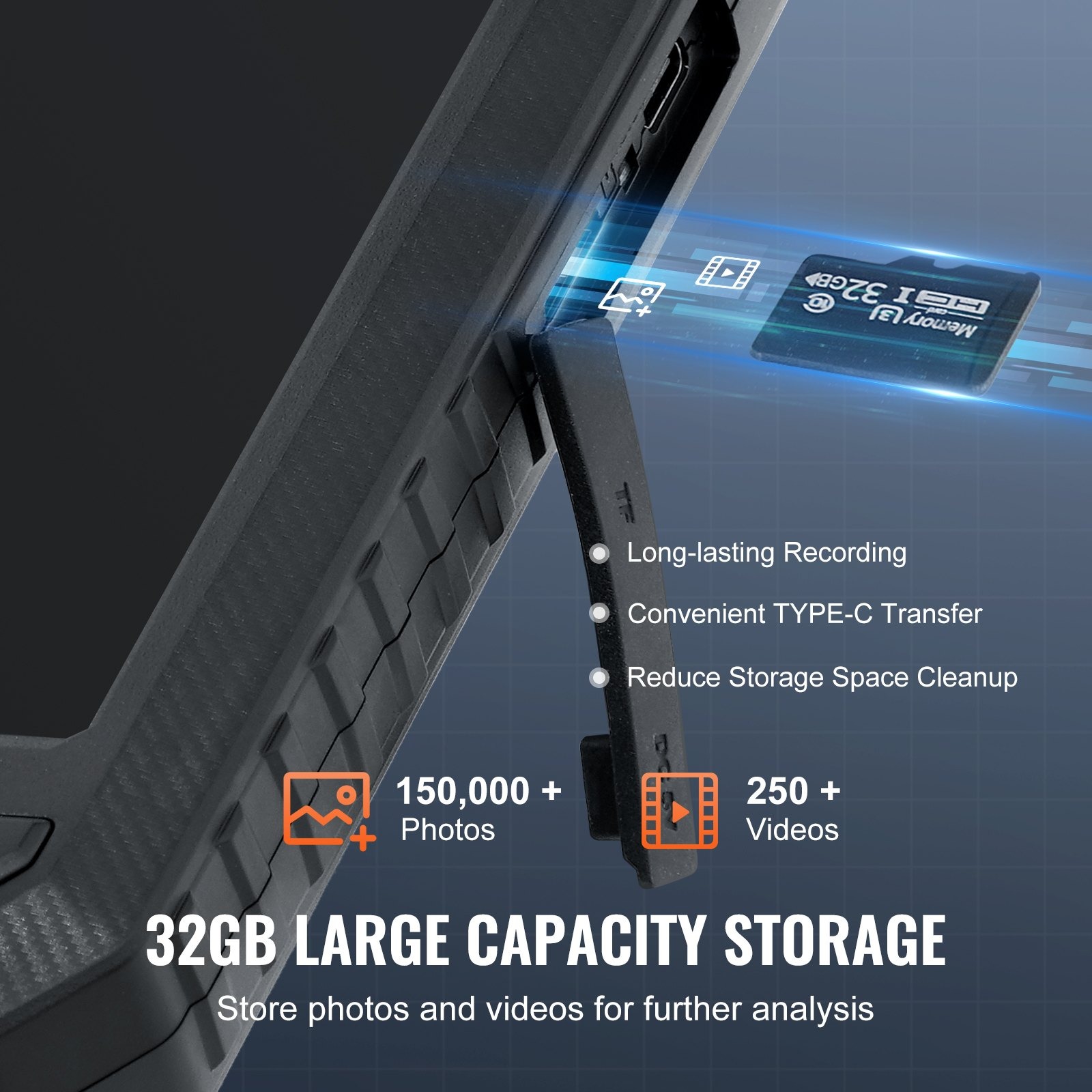 Професионален ендоскоп VEVOR 5003 разполага с една фронтална и две странични камери, предназначени за визуална инспекция на дълбоки и труднодостъпни зони. Тройната конфигурация позволява наблюдение под различни ъгли без необходимост от постоянно изваждане и повторно позициониране на сондата. Бороскопът има 5-инчови IPS дисплей за ясна и детайлна картина с реалистични цветове. Резолюцията 1080P позволява разпознаване на фини дефекти като запушвания, отлагания, корозия, пукнатини и механични повреди при инспекция на канализации, климатични системи, индустриални тръбопроводи и двигателни компоненти.
