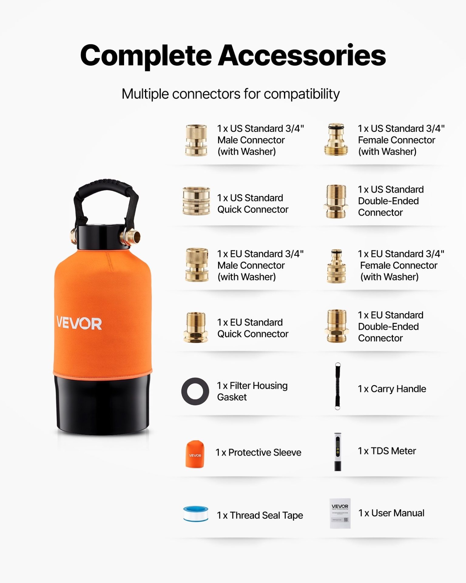 Капацитетът достига до около 757 литра при входна вода 200 ppm, което осигурява стабилна работа при многократни измивания. Включеният TDS метър позволява бърз контрол на качеството на водата и навременна смяна на смолата, като препоръчителният праг е около 30 ppm. Конструкцията включва удобна дръжка за пренасяне, резервоар за лесно презареждане и набор от EU и US конектори за различни връзки. Работи като последна стъпка след стандартно измиване и изплакване.