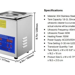 - Капацитет на резервоара: 1,8-2L (Тъй като дъното на ултразвуковата почистваща машина е извита повърхност, действителният обем ще бъде по-малък.)